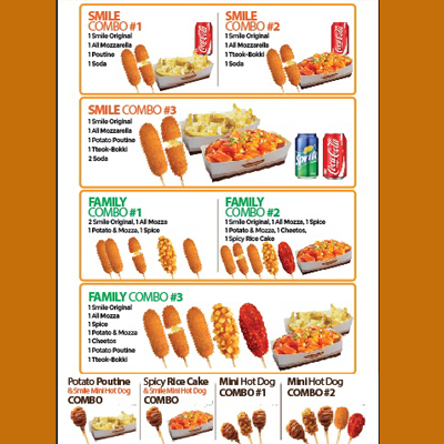 Miniature versions of three variations of corndogs are included in this combo (Smile Original, Potato Mozzarella, and All Mozzarella).
